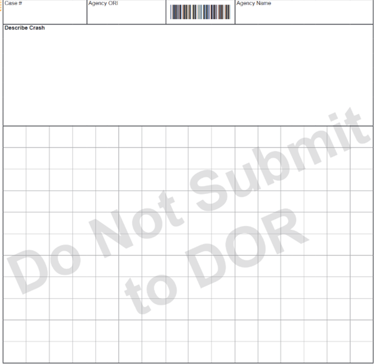 The following screenshots illustrate a section of the crash report that includes both a written description and a diagram of the incident. Even with all of the boxes to check above, the information written here can be critical, because it allows officers to give their impressions about what happened based on what they see and hear. The next section provides a graph that the responding officer can use to document what took place, showing a simple image of what occurred.