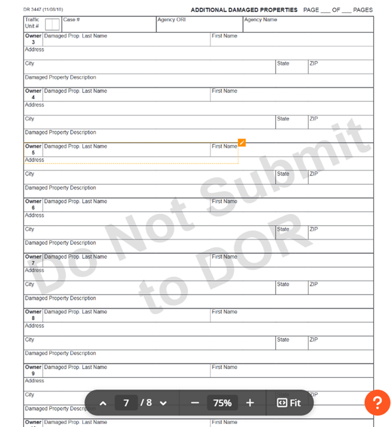 This section documents the type of property that was damaged during the process, as well as who owned it. There is also room for a brief description of the damaged property.